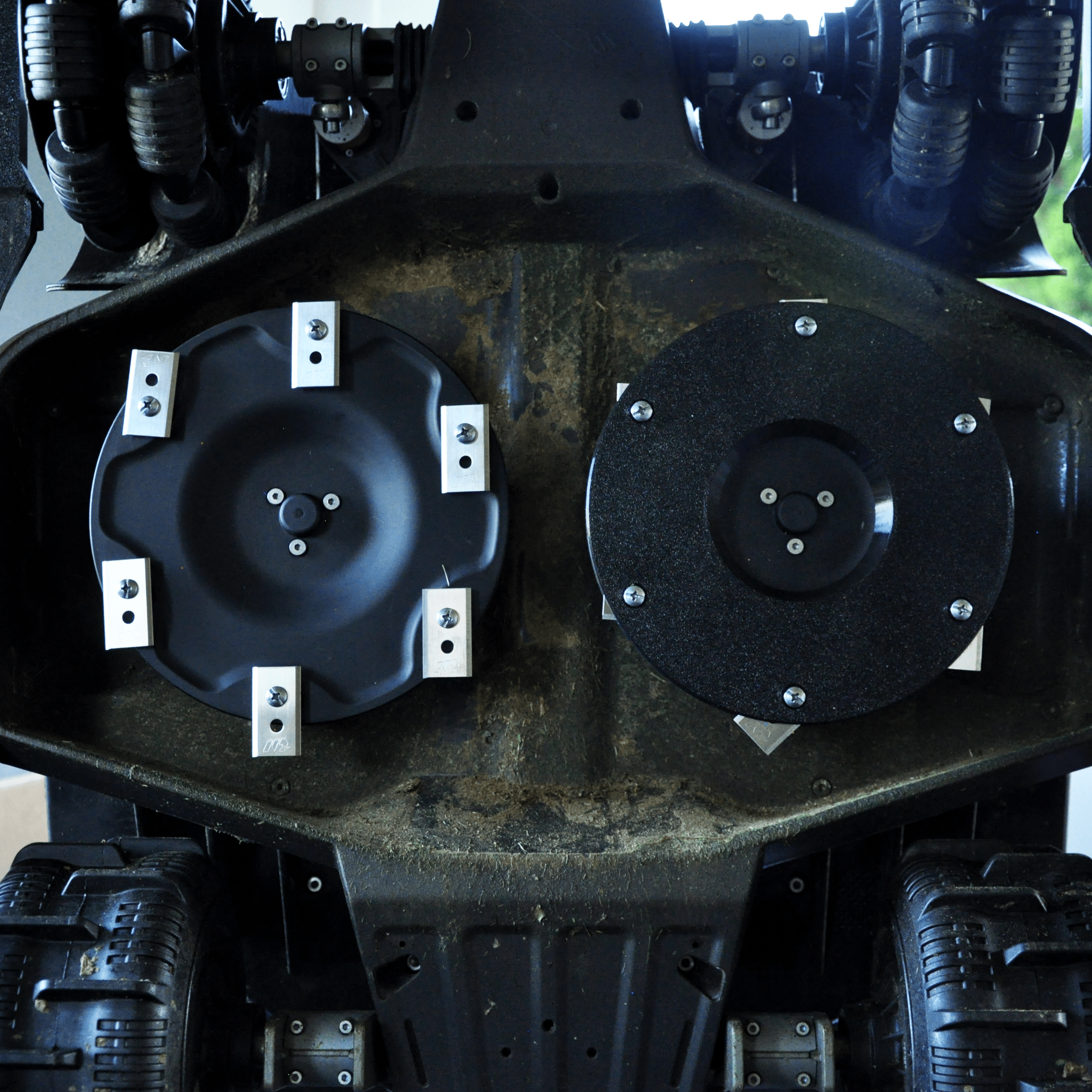 Upgrade your Mammotion Luba 2X robotic mower with this precisely engineered disc cover set, designed to reduce grass build-up under and around the blades.